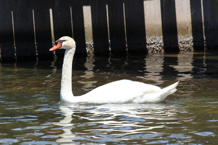 Is there a more a more elegant bird than the mute swan? This bird exudes elegance and grace as it glides along a lake or lagoon. Unless it is a breeding pair, and then they can be extremely vicious in defending their territory. The mute swan is huge and white, with a reddish-orange bill with a large black facial knob. They have long curved necks and long pointed tails.