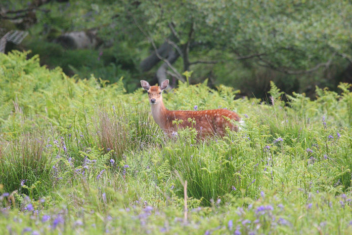 Sika deer have been on the island since 1927 when Martin Coles Harman brought over 7 Japanese sika. At the time of writing this there are just over 100 deer on the island. The males are stags and the females are hinds (not does). Their summer coats are a red/ginger with white spots and a wonderful dark grey in the winter.