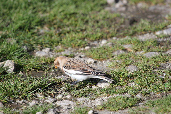 During my last Autumn on Lundy, for a few days, a flock of 5 individuals could be seen in the heather around Tibbets. They were in their winter plumage of sandy brown backs with white, black tipped wings.